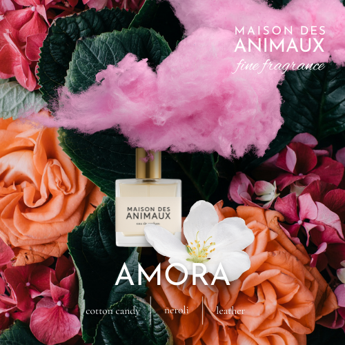 Amora is a jammy roses and cotton candy clouds of neroli. Amora is flirty, femmy, and playful. But, also, there's leather.
