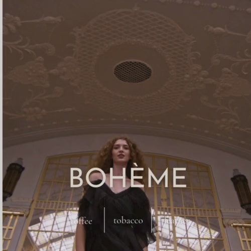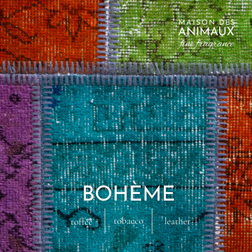 Bohème is lightly sweet, deep, warm, and unisex. It starts with labdanum, cinnamon, and toffee, and transforms into leather and a bit of smoldering pipe tobacco hovering above that perfect glass of bourbon. The drydown is a honied musk that is just delicious.